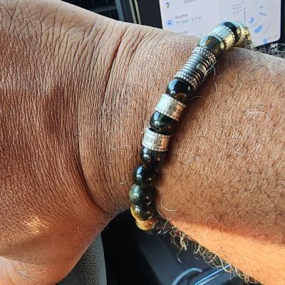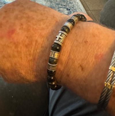 Reviews for Cross Men Name Bracelet with Green Tiger Eye Stones